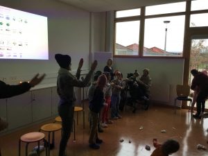 Gemeinsam haben wir mit Gebärden das Lied „Es schneit“ gesungen.