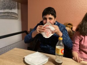 Dort gab es leckeren Döner und Pommes.