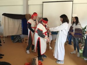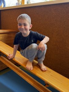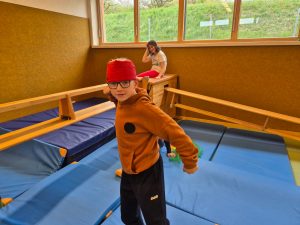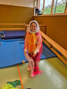 Wir hatten heute viel Zeit in der Turnhalle. Klettern, Verkleiden und Spielen.