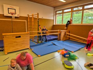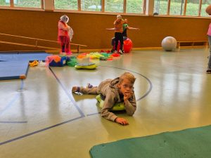 Am Vormittag haben wir eine Bewegungslandschaft in der Turnhalle erprobt.
