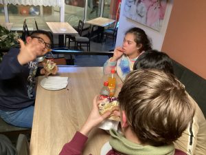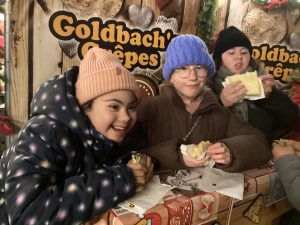 Natürlich mussten wir auch leckeres Essen probieren, zum Beispiel Maroni-Kastanien und Crepes.