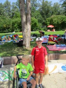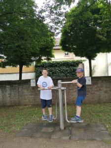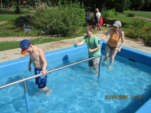 Nach einem leckeren Früh•stück hatten wir eine Wasser•schlacht und Spaß im Kneipp-Becken.
