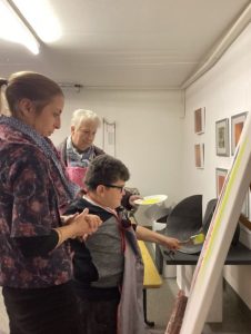 Wir haben gemeinsam auf eine große Leinwand gemalt